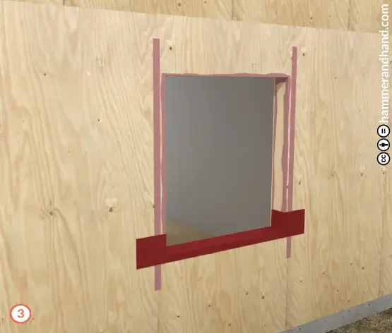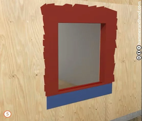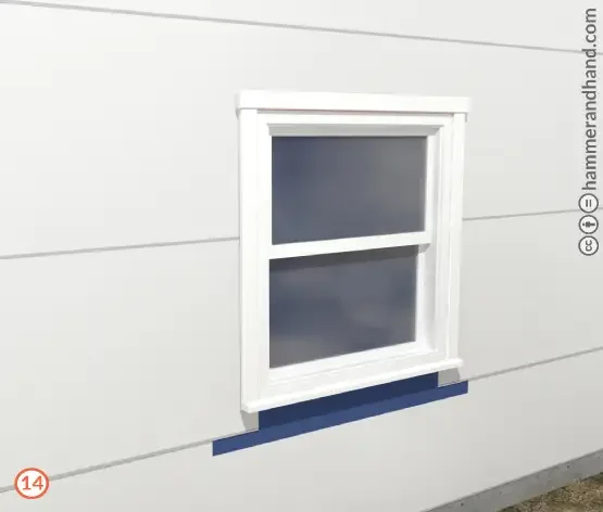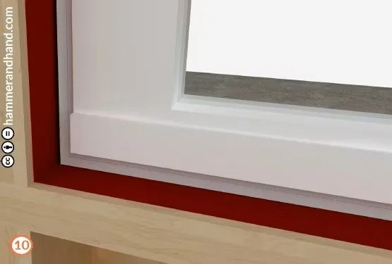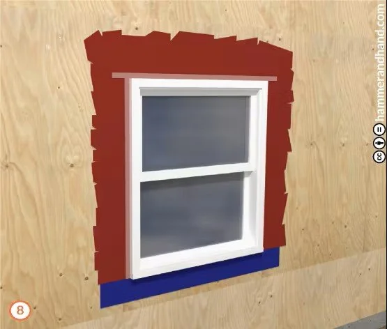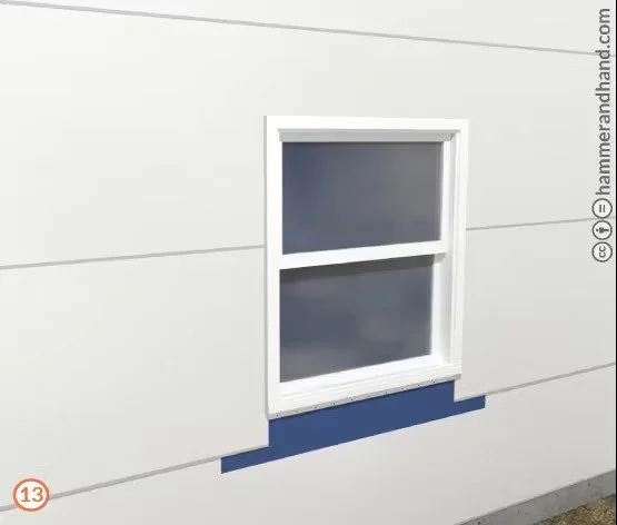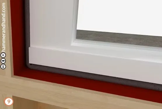 Apply FastFlash to sill, extending 9” out from the RO to either side.