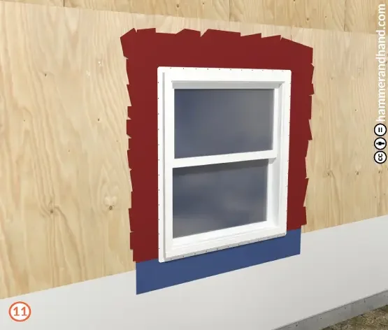 Must extend down from sill at least 4” farther than FastFlash to adequately lap over WRB to be installed later.