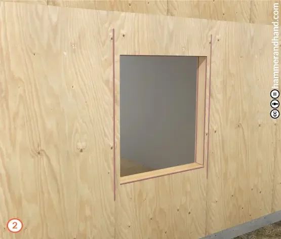 Router or sand the rough opening (RO) to make clean edges for applying fluid flashing.
