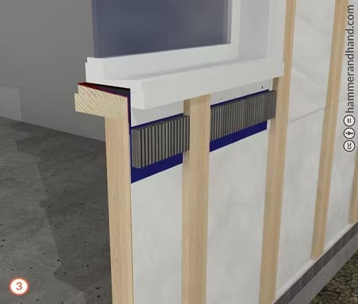Cut pieces of Cor-A-Vent SV-5 to fit flush in between furring below window.