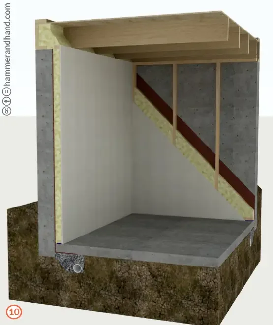 Basement retrofits require special care and attention to moisture management, but with a unique constraint in most cases: all our efforts are limited to the inside of the structure. Our experience with basement retrofits is that there are two types of existing basements: ones that leak now and ones that will leak in the future. Therefore, our retrofit strategy is to establish a robust behind-the-wall drainage system interconnected to an active dewatering system.