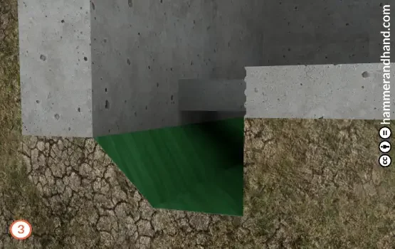 Cut concrete floor at least 14” away from foundation wall (wider if footing is in the way).